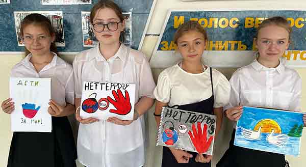 В День солидарности в борьбе с терроризмом обучающиеся нашей школы приняли участие в акции. Основой рисунков стали отпечатки ладоней, на которых дети изобразили мир без терроризма.