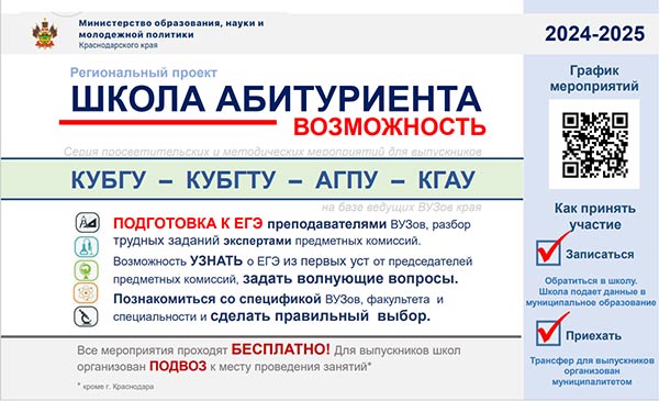 В Краснодарском крае реализуется региональный проект «Школа абитуриента» в 2024-2025 учебном году.