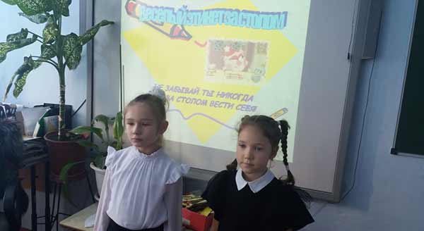 23.11.2022 г. в МОБУ СОШ v 15 ребята начальной школы поучаствовали в игре-викторине "Правила поведения за столом" с целью систематизировать знания по элементам этикета и сервировки стола.