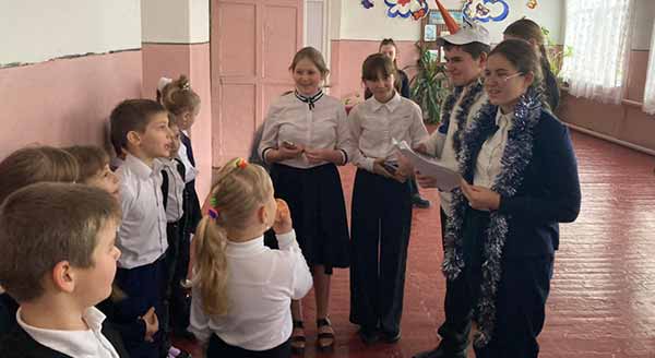 20 декабоя театральный кружок "Маскарад" поздравил всех учащихся с наступающим Новым годом! Учащиеся самостоятельно сделали себе костюмы и прошли по школьным коридорам с развлекательной программой.