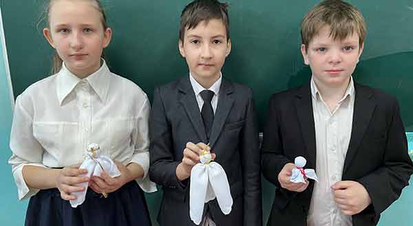 10 марта учащиеся 3 класса приняли участие в акции «Талисман Добра». Из платочков и лент сделали ангелочков для наших солдат.