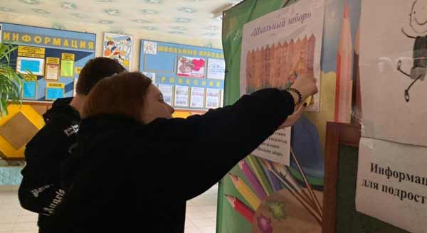 20 марта ученики школы провели плановое мероприятие по информированию жителей поселения о пунктах сбора гуманитарной помощи.