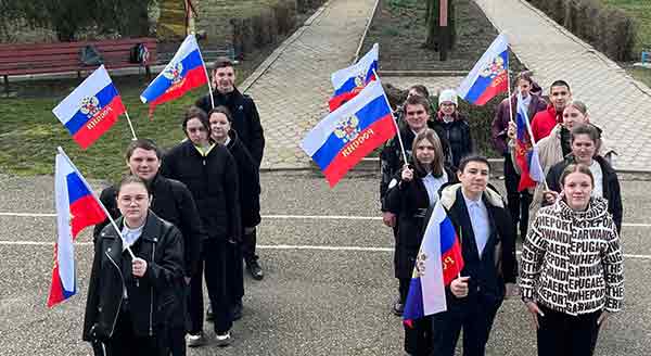 Обучающие 8 класса участвуют в акции посвященной 10-летию воссоединения Крыма с Россией.